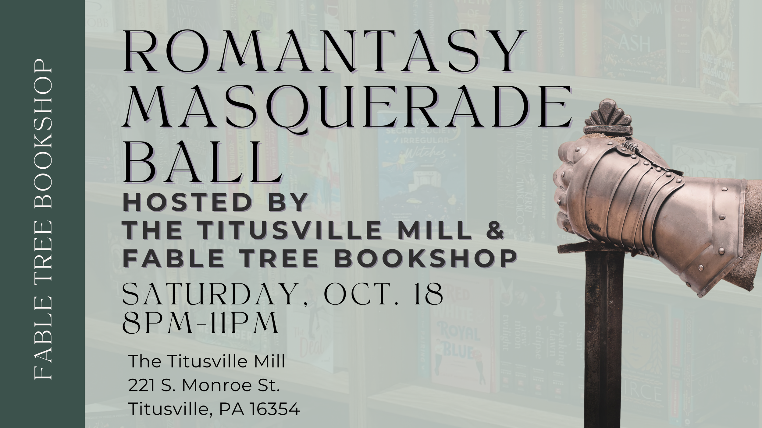 Presented by Fable Tree Bookshop and The Titusville Mill , this one-night-only experience transforms the historic ballroom into a realm of masks, mystery, and timeless romance.