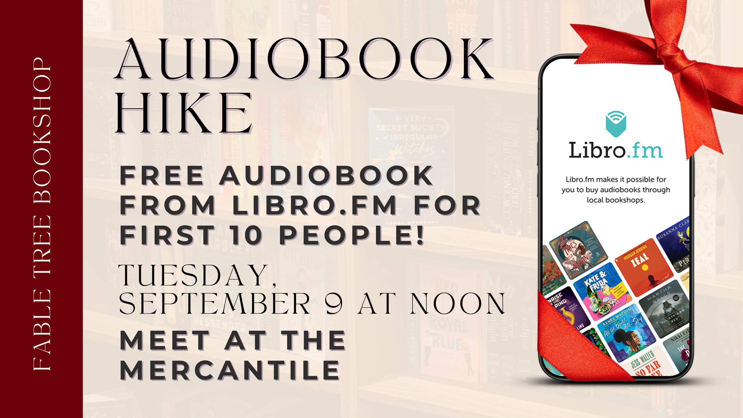 We’ll meet at The Mercantile to get set up: Libro.fm has provided free audiobook credits for the first ten attendees, and I’ll hand those out as people arrive. Get set up with Libro, choose your audiobook, and we’ll head out!